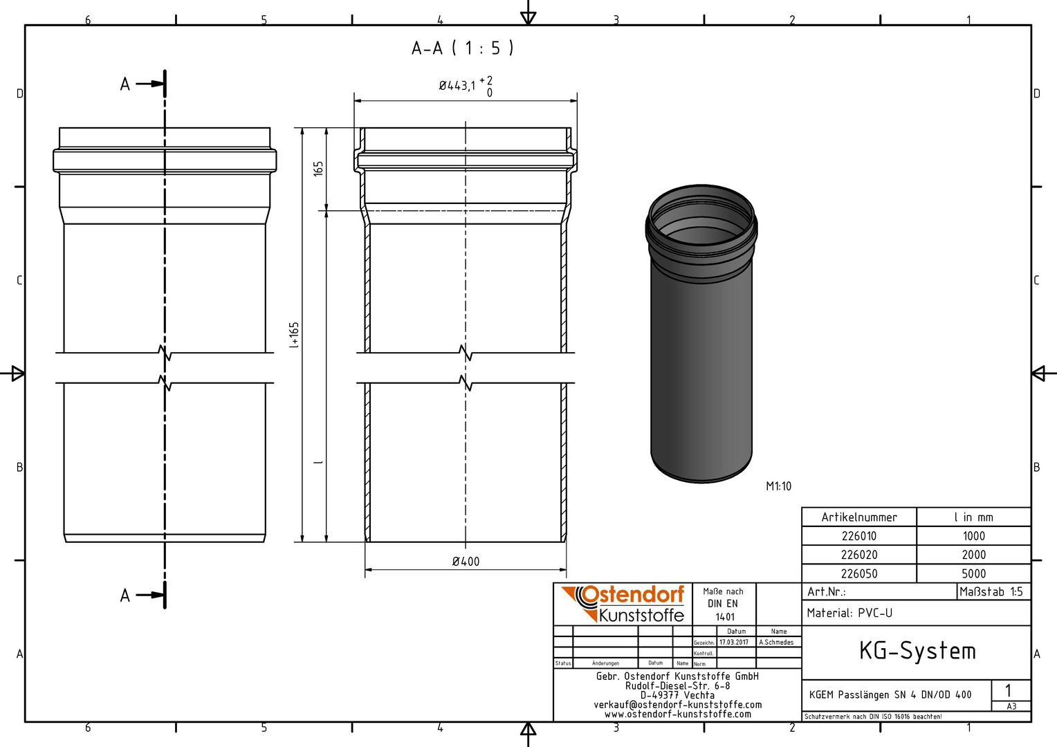 Ostendorf KG Rohr SN 4 Coex EM DN/OD 400 x 9,8 mm, 1000 mm, mit Muffe