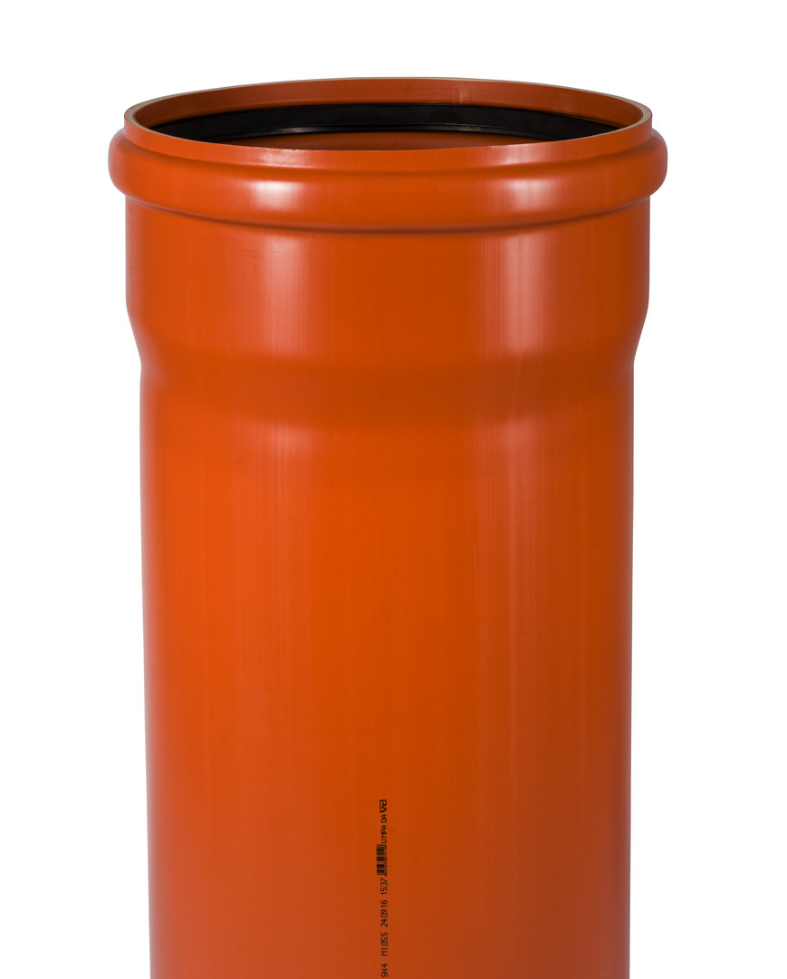 aus PVC-U (Polyvinylchlorid, weichmacherfrei), Co-extrudierte Rohre DIN EN 13476-2, Anwendung für erdverlegte Abwasserkanäle und -leitungen, Montage DIN EN 1610, DIN EN 476, DIN 1986-100, orangebraun RAL 8023, Dichtung Werkseitig eingelegte SBR-Dichtung nach DIN EN 681 bei SN 4 Coex Rohren und allen Formteilen, für öl- und fetthaltige Abwässer sind NBR-Dichtringe zu verwenden, Chemische Beständigkeit Ableitung von aggressiven Medien im Bereich pH 1 bis pH 13, Rohraufbau Co-extrudierte Rohre mit mehrschichtigem Wandaufbau
