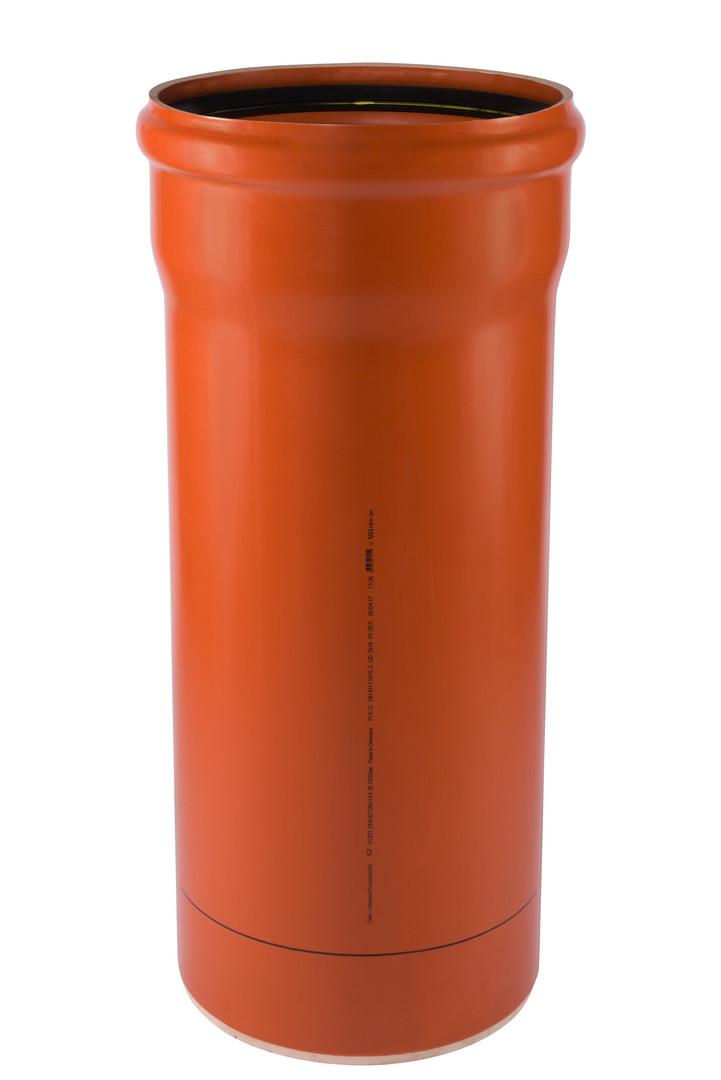 aus PVC-U (Polyvinylchlorid, weichmacherfrei), Co-extrudierte Rohre DIN EN 13476-2, Anwendung für erdverlegte Abwasserkanäle und -leitungen, Montage DIN EN 1610, DIN EN 476, DIN 1986-100, orangebraun RAL 8023, das Coex SN 8 wird mit einem deutlich verbesserten werkseitig eingelegten Dichtsystem angeboten, die neue Lippendichtung hat einen eingelegten Polypropylen-Stützring, die geforderte Dichtigkeit nach DIN EN ISO 13259 mit Druck und Vakuum wird weit übertroffen, der Dichtring wird nach DIN EN 681 gefertigt, für öl- und fetthaltige Abwässer sind NBR-Dichtringe zu verwenden, Chemische Beständigkeit Ableitung von aggressiven Medien im Bereich pH 1 bis pH 13, Rohraufbau Co-extrudierte Rohre mit mehrschichtigem Wandaufbau