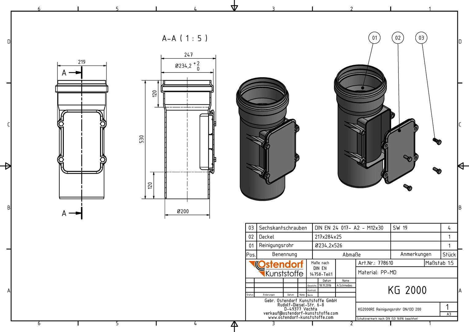 Ostendorf KG2000 Reinigungsrohr RE DN/OD 200