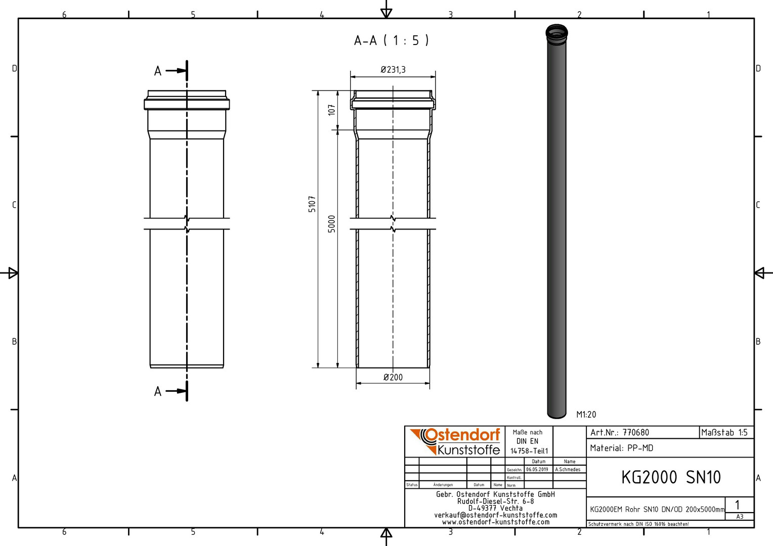 Ostendorf KG2000 Rohr SN 10 EM DN/OD 200, 5000 mm, mit Muffe