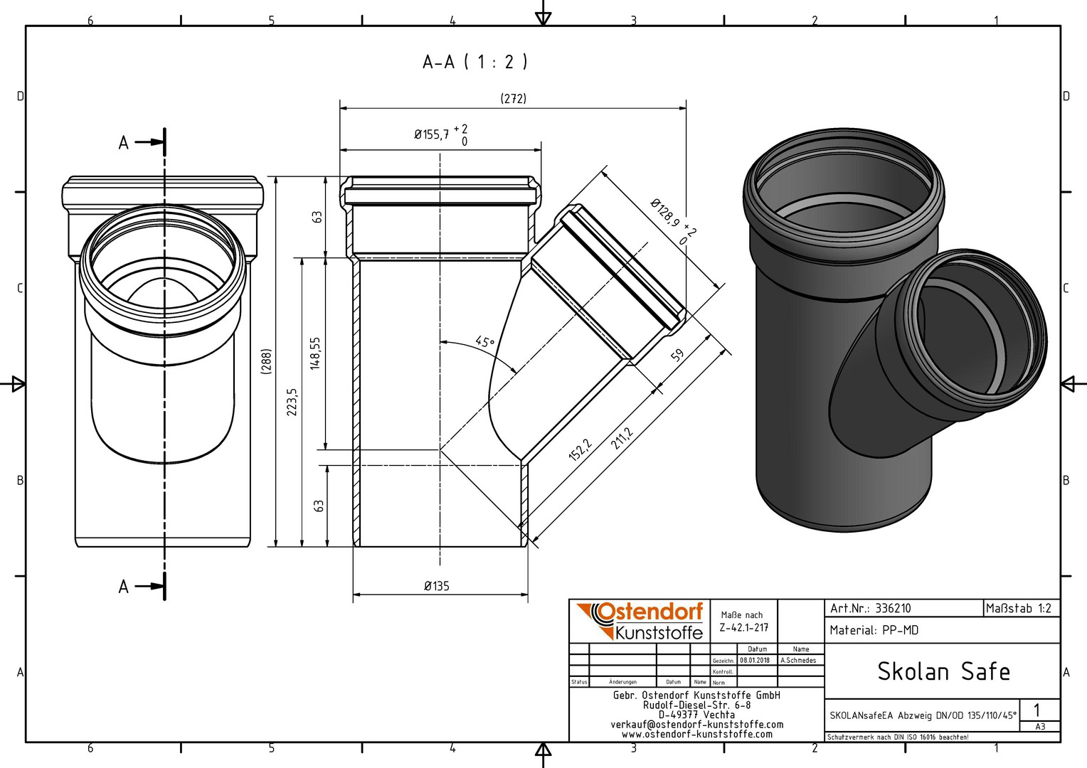 Ostendorf SKOLANsafe Abzweig EA DN/OD 135/110, 45Grad