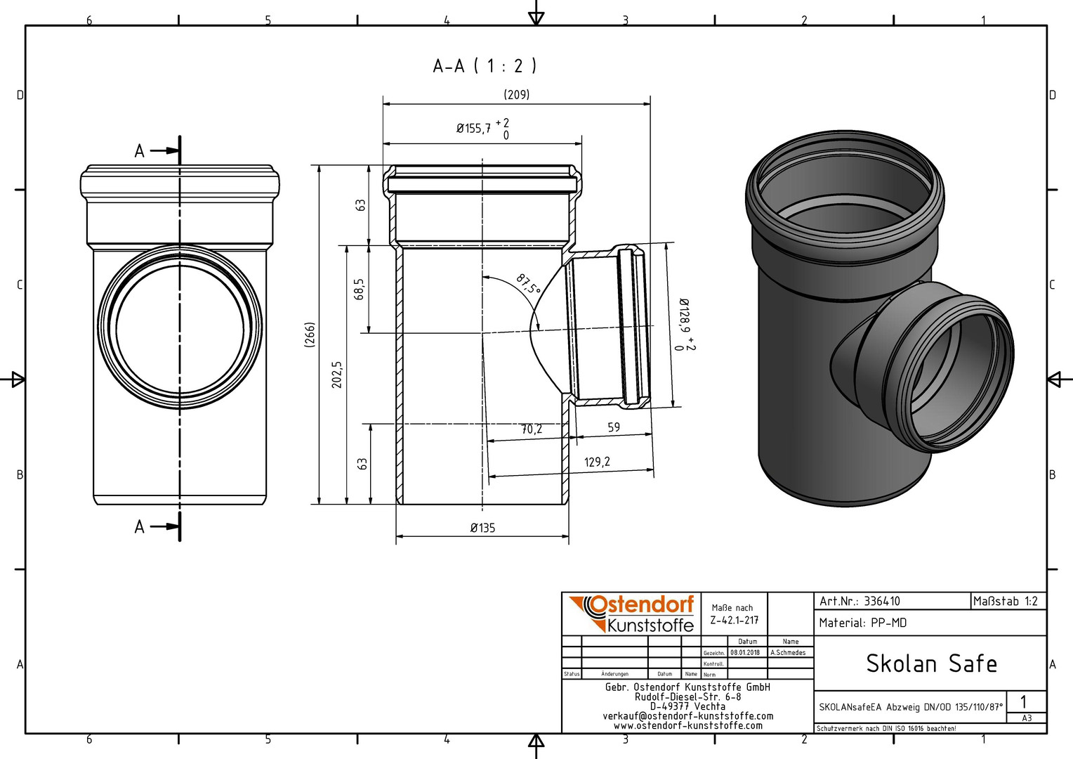 Ostendorf SKOLANsafe Abzweig EA DN/OD 135/110, 87,5Grad