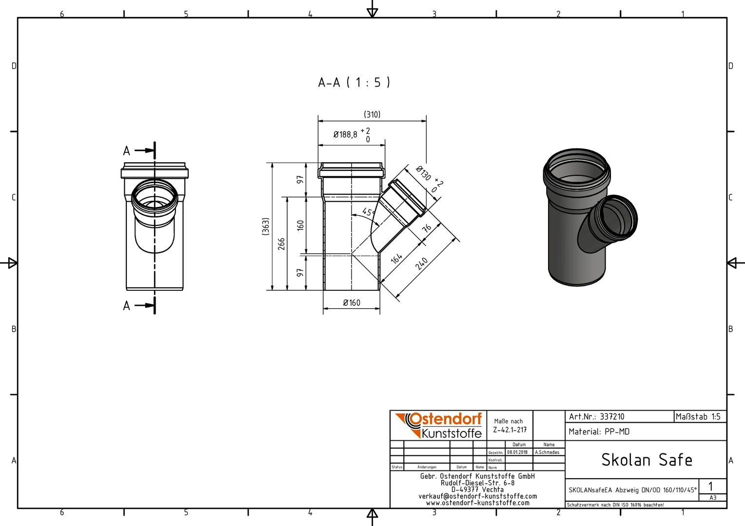 Ostendorf SKOLANsafe Abzweig EA DN/OD 160/110, 45Grad