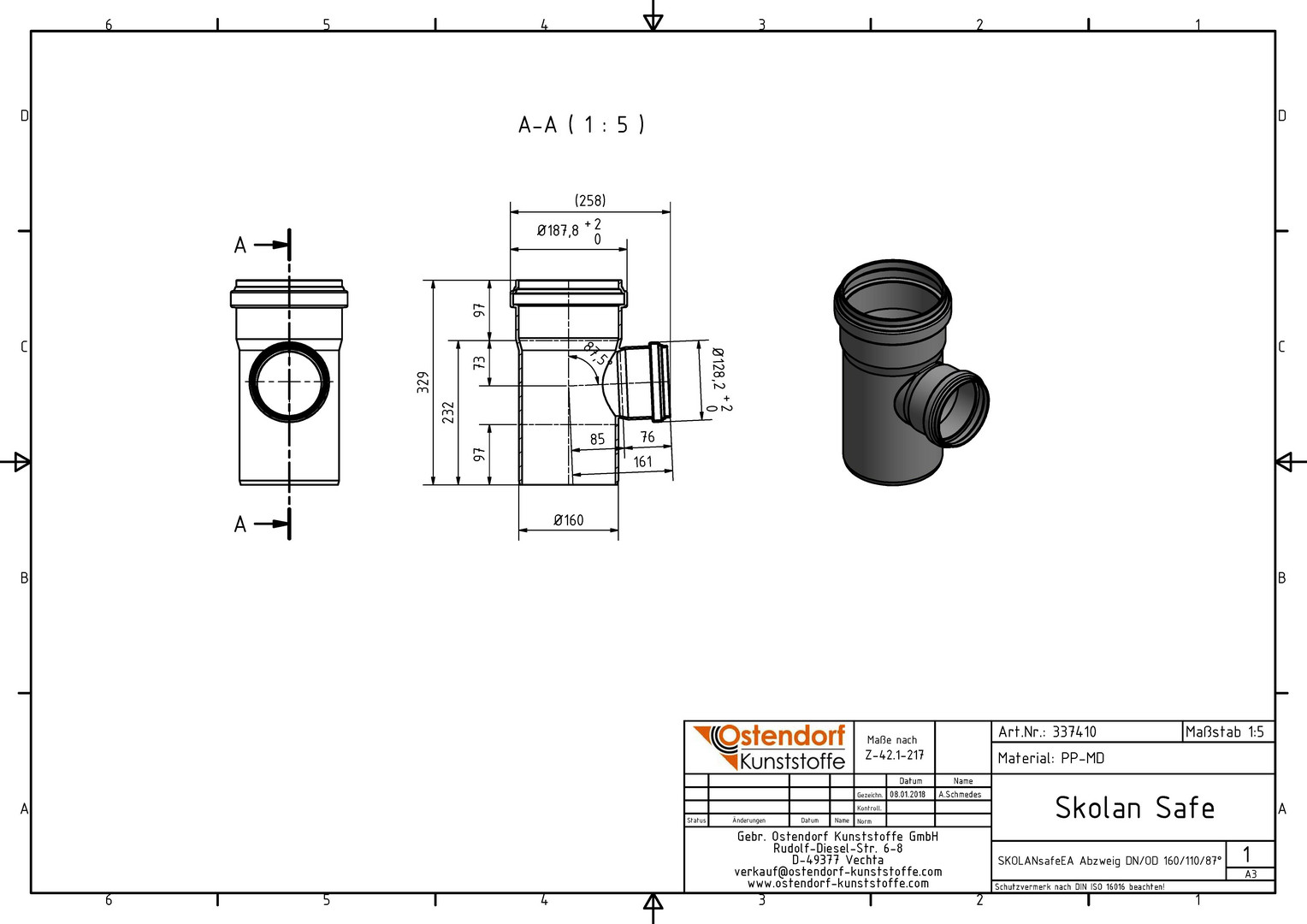 Ostendorf SKOLANsafe Abzweig EA DN/OD 160/110, 87,5Grad