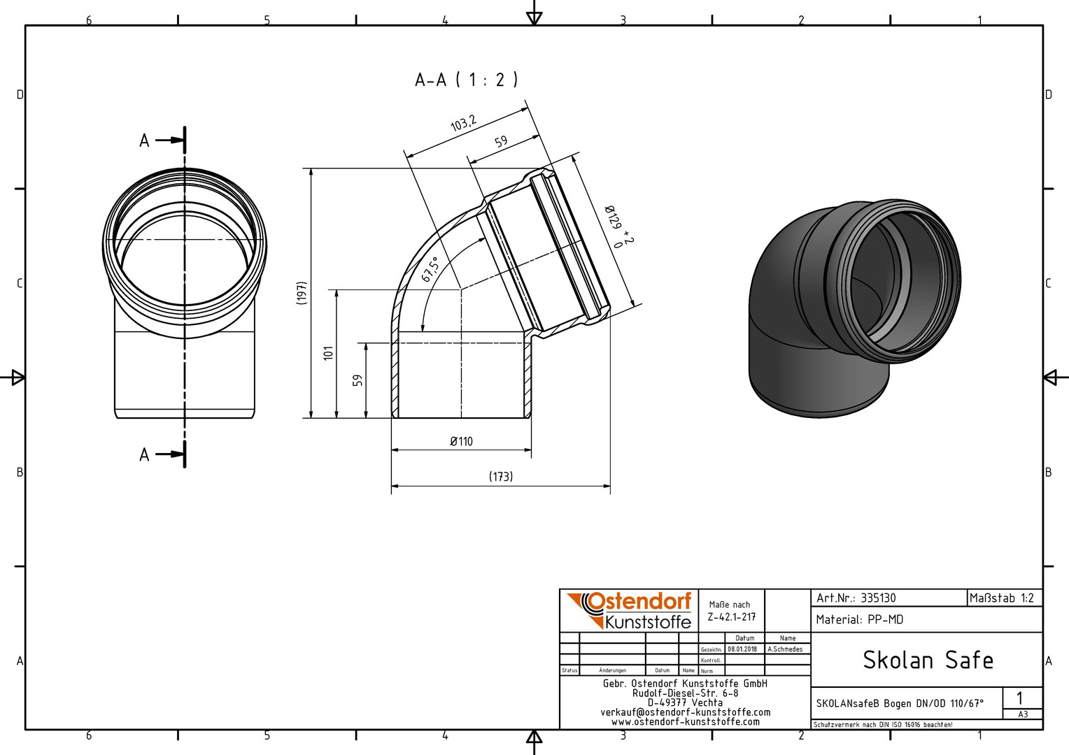 Ostendorf SKOLANsafe Bogen B DN/OD 110, 67,5°