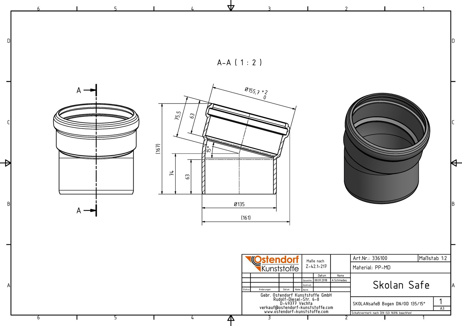 Ostendorf SKOLANsafe Bogen B DN/OD 135, 15°