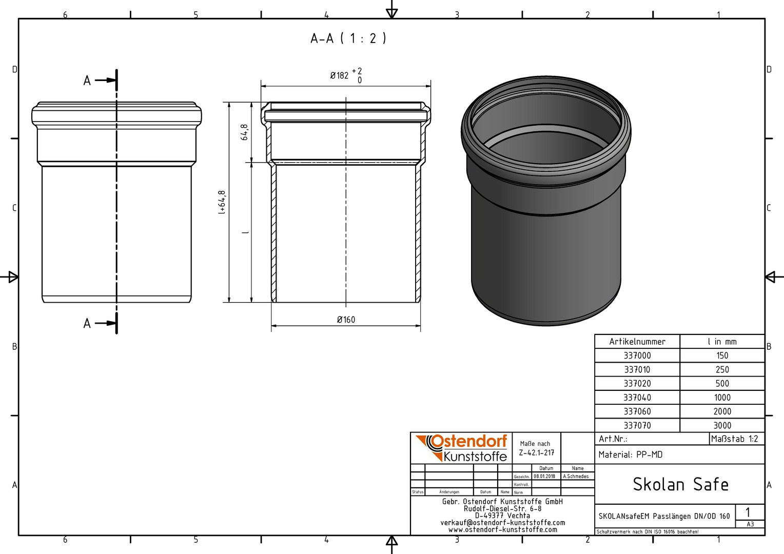 Ostendorf SKOLANsafe Rohr EM DN/OD 160, 150 mm, mit Muffe