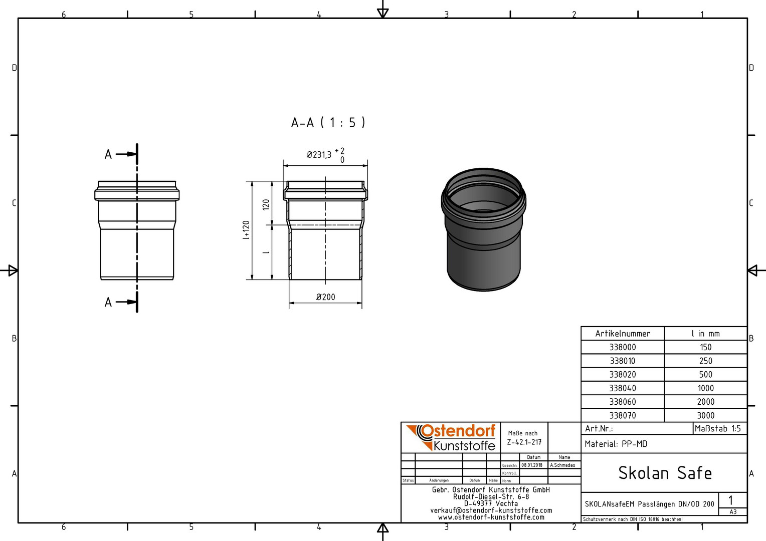 Ostendorf SKOLANsafe Rohr EM DN/OD 200, 3000 mm, mit Muffe
