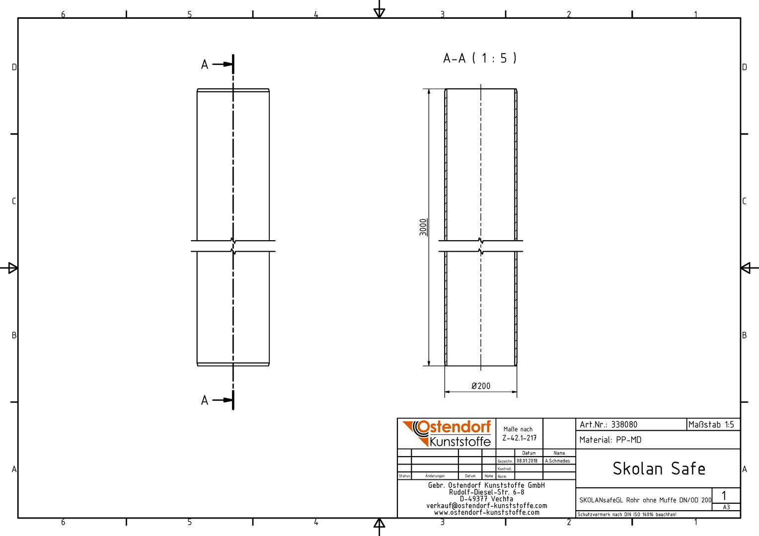 Ostendorf SKOLANsafe Rohr GL DN/OD 200, 3000 mm, ohne Muffe