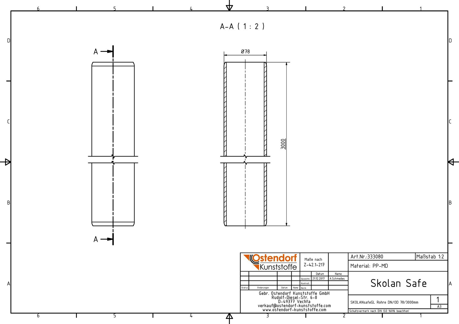 Ostendorf SKOLANsafe Rohr GL DN/OD 78, 3000 mm, ohne Muffe