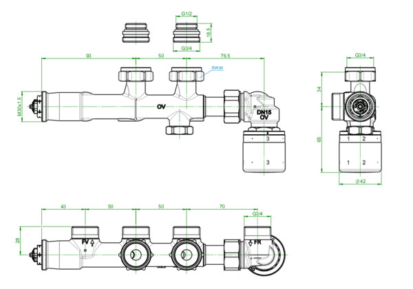 Oventrop Anschlussarmatur Multiblock T-RTL G 3/4 ÜM x G 3/4 AG, Eckform W809064