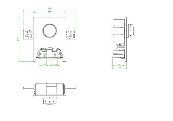 für den Einsatz in Anlagen mit flächenheizungsgerechten Vorlauftemperaturen, bestehend aus: Wandeinbaukasten mit voreinstellbarem Thermostatventil, Entlüftungs- und Spülventil, Ventilisolierung, Abdeckung mit integriertem Thermostat, für den Betrieb mit nicht aggressiven, ungefährlichen Flüssigkeiten, max. Betriebsdruck ps: 10 bar, Betriebstemperatur ts: 2-100 °C, Sollwertbereich: 7-28 °C (Raumtemperatur), Ventil mit G 3/4 Rohrleitungsanschluss nach DIN EN 16313 (Eurokonus), Abmessung der Abdeckung Echtglas 155 x 210 x 6 mm, weiß 155 x 210 x 8 mm