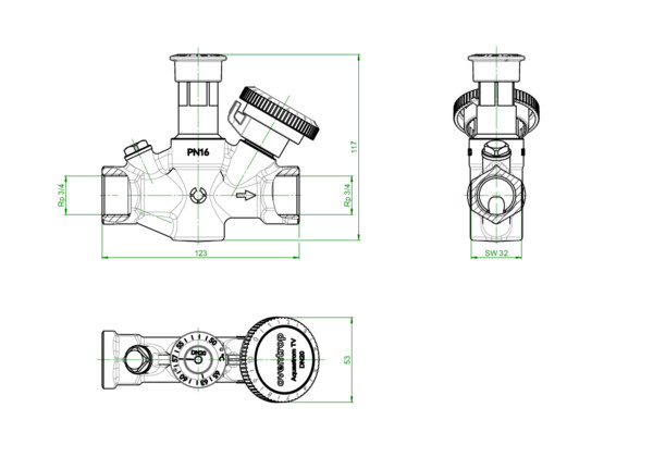 Oventrop Zirkulationsventil Aquastrom TV DN 20, Rp 3/4, mit Innengewinde