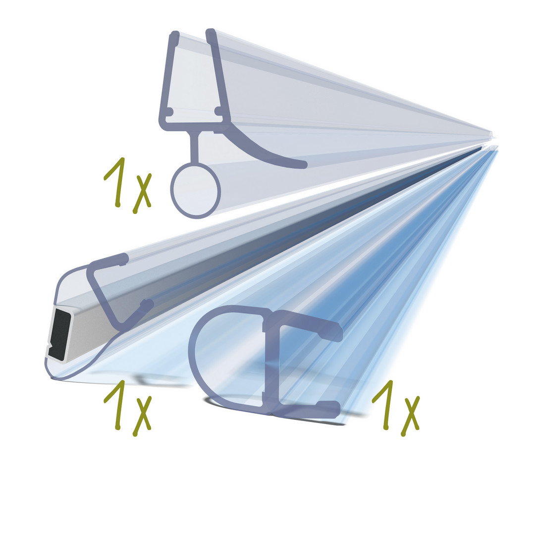1 x Scharnierdichtung, Länge 2000 mm (105959), 1 x Magnet-Türdichtprofil 45° Grad, Länge 2000 mm (105838), 1 x Bodendichtung, Länge 1000 mm (102117)