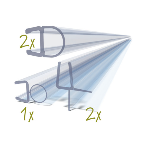 2 x Scharnierdichtung, Länge 2000 mm (105959), 1 x Scharnierdichtung, Länge 2000 mm (106351), 2 x Bodendichtung, Länge 1000 mm (104242)
