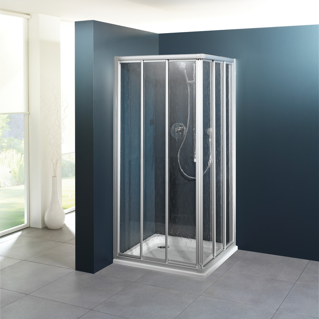 Palme Eckeinstieg mit Schiebetüren Drive LB 73,5 x 190 cm, rechts, KSG Tropfen transparent, alusilber, 3-teilig W232514