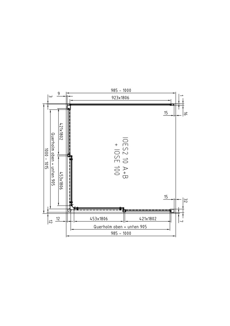 | Einbaubreite Wand für die Montage mit Tür | 985 - 1000 mm |