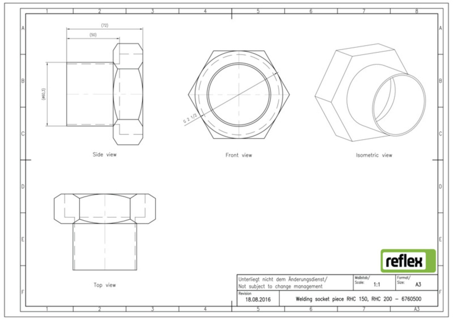 Reflex Anschlussverschraubung Longtherm G 2 1/2 x 60 mm, mit Anschweiss-Ende, Set, Stahl W817527