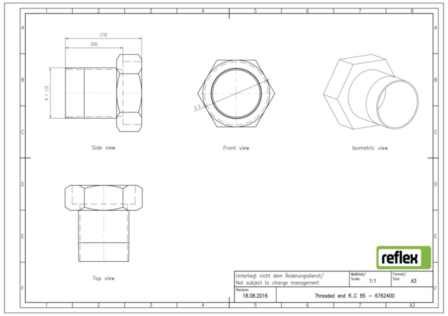 Reflex Anschlussverschraubung Longtherm G 2 1/2 x R 2, mit Aussengewinde, Set, Messing W817533