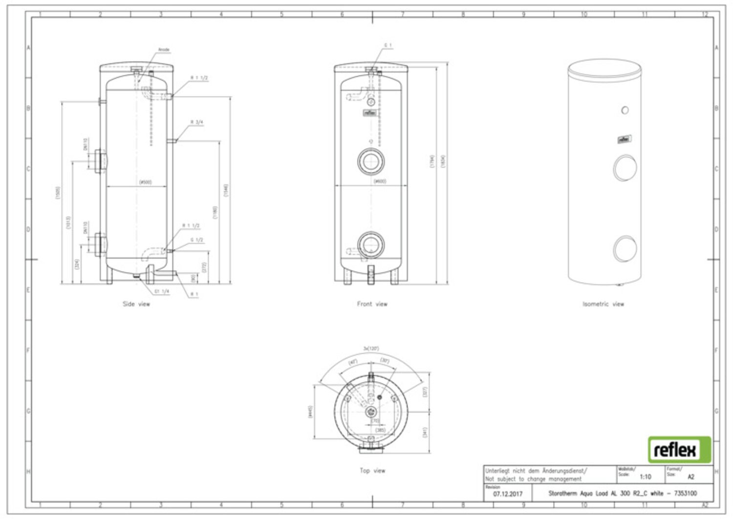 Reflex Ladepeicher Storatherm Aqua Load AL 300/R2_C, Ø 590 mm, mit 2 Revisionsflanschen, weiß W817557
