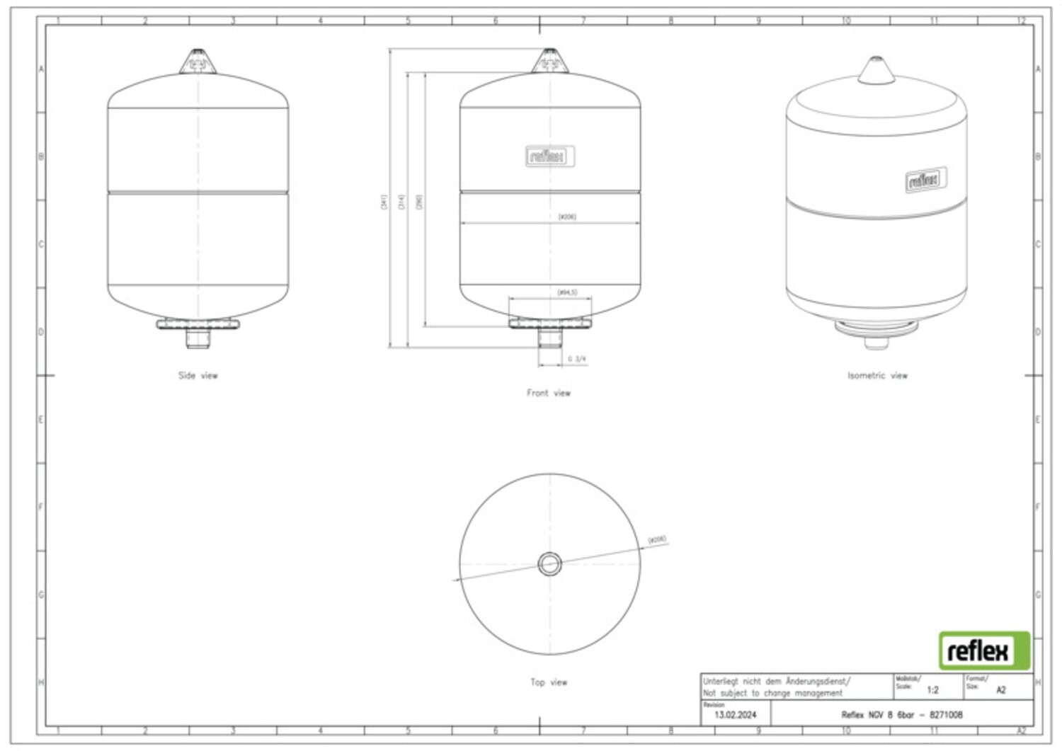 Reflex Membran-Druckausdehnungsgefäß NGV 8 1,5 bar/70 °C, G 3/4, grau W817048