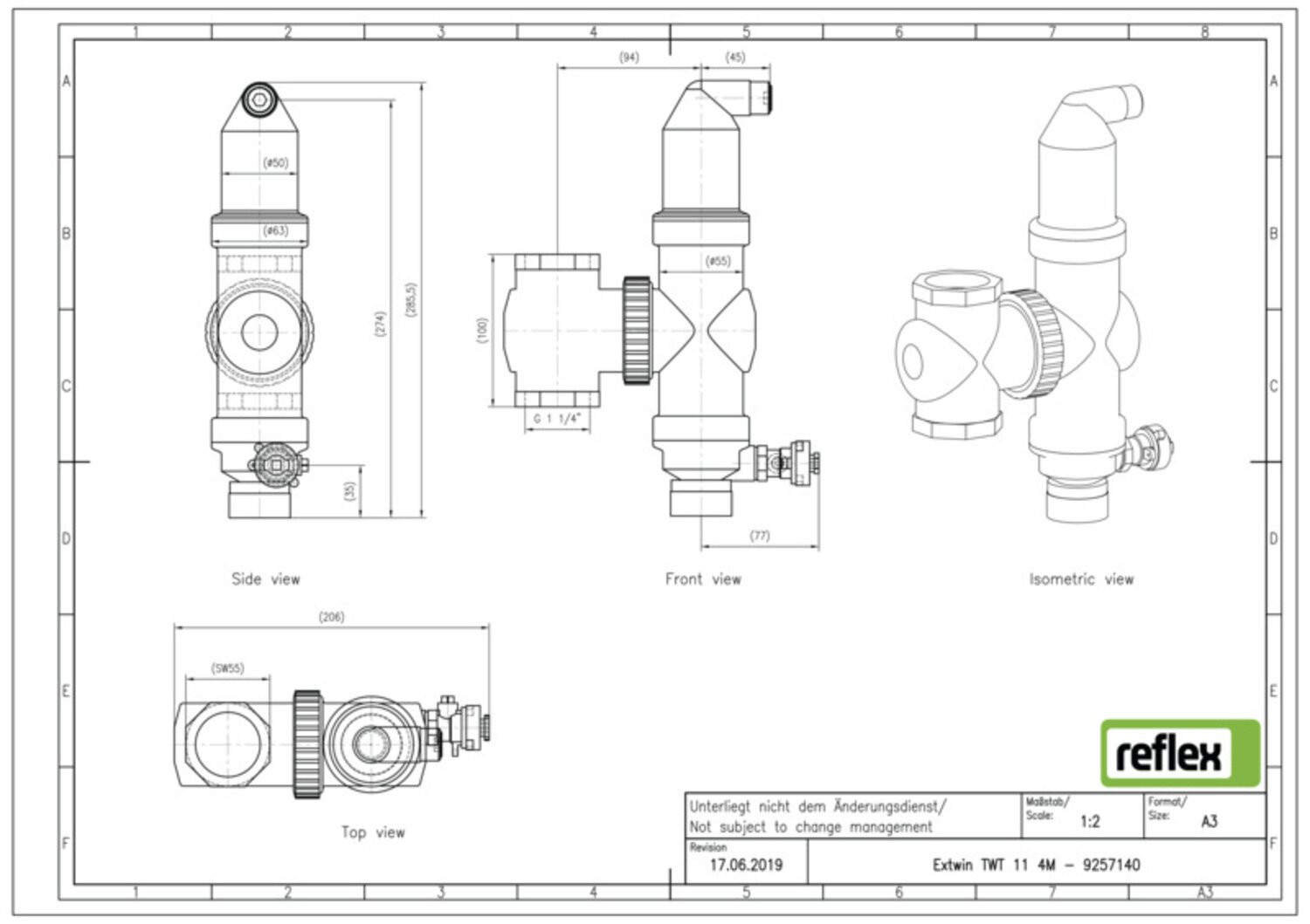 Reflex Mikroblasen-/Schlammabscheider Extwin Twist TWT 1 1/4", IG 1/4", 110 GradC, 10 bar, Messing