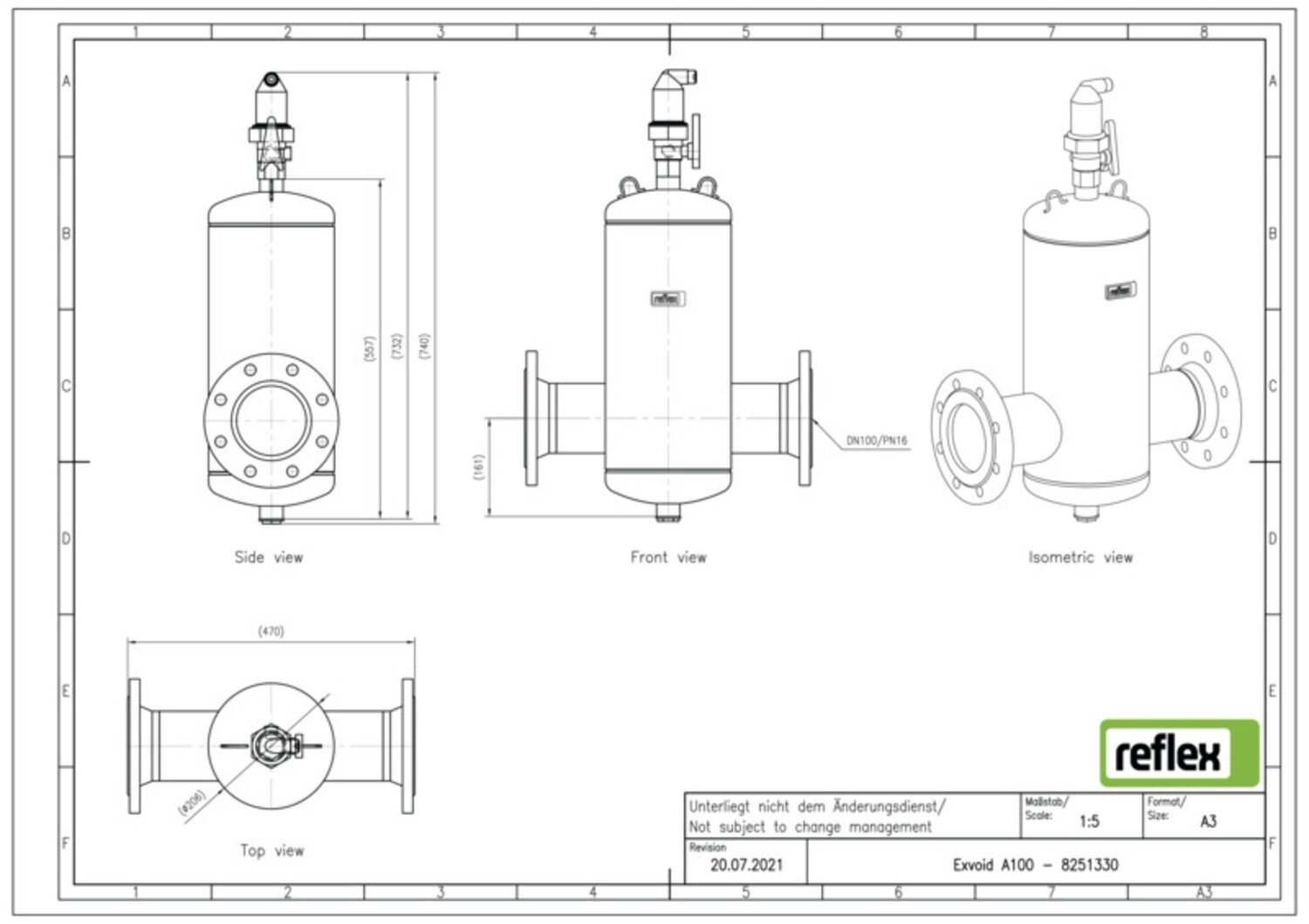 Reflex Mikroblasenabscheider Exvoid A 100, 110 GradC, 10 bar, Stahl, Flanschanschluss W810674