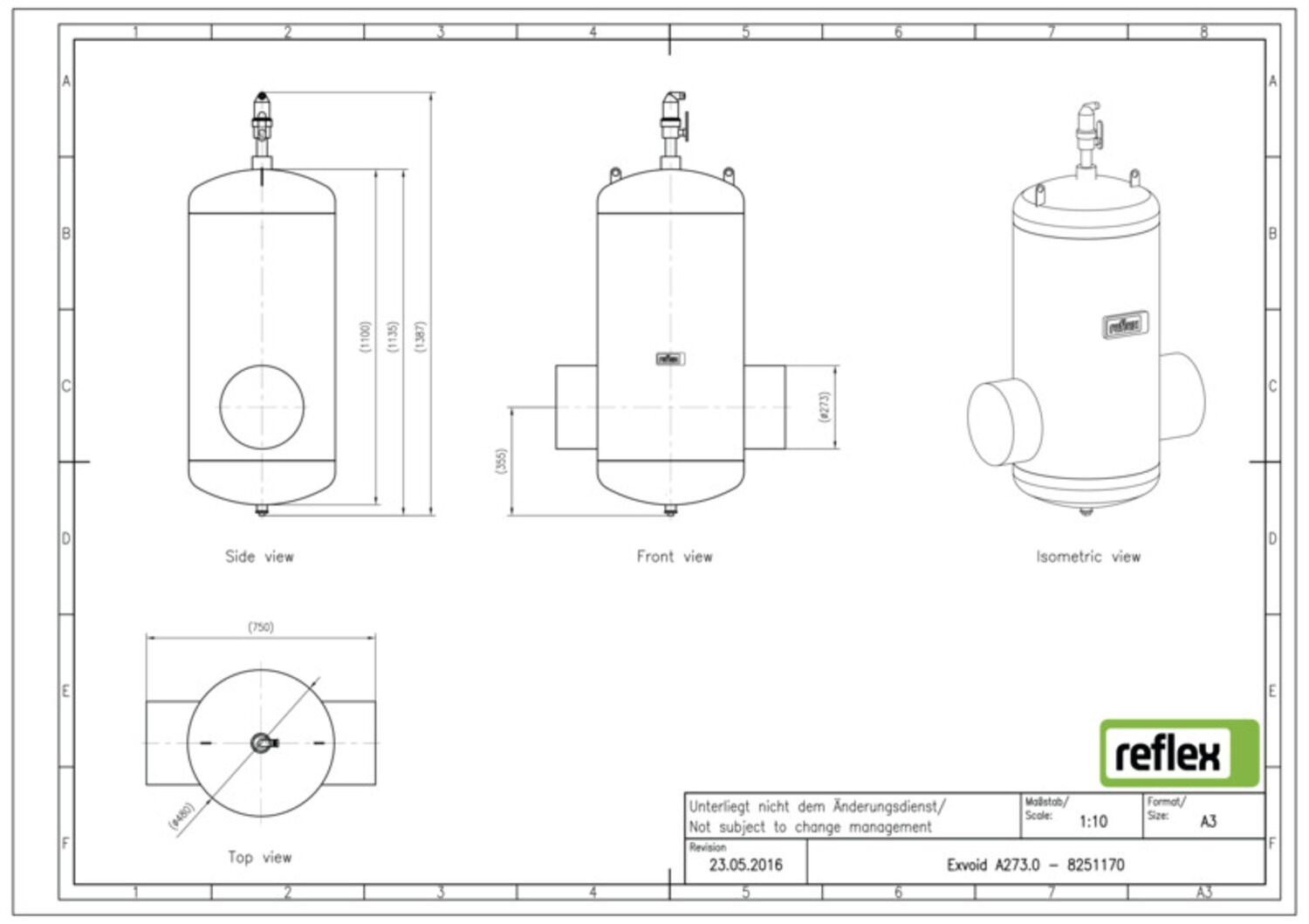 Reflex Mikroblasenabscheider Exvoid A 139.7, 110 GradC, 10 bar, Stahl, Schweißstutzen W810666