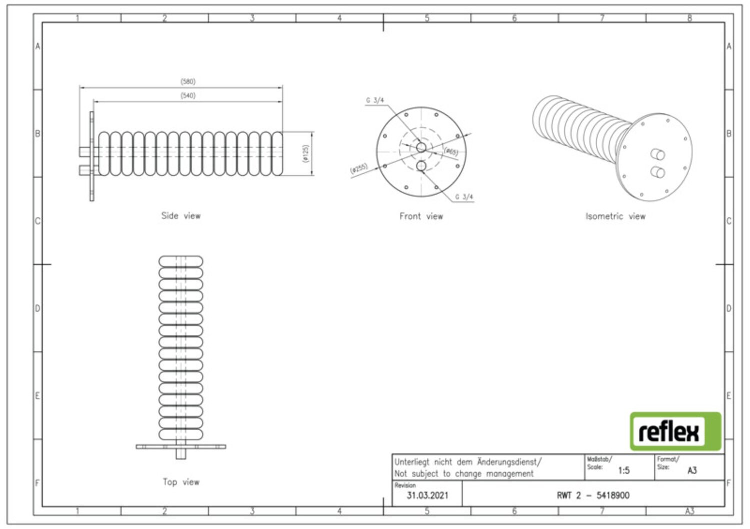 Reflex Rippenwärmeübertrager Storatherm RWT 2, Heizfläche 2,30 qm, Ø 170 mm W818474
