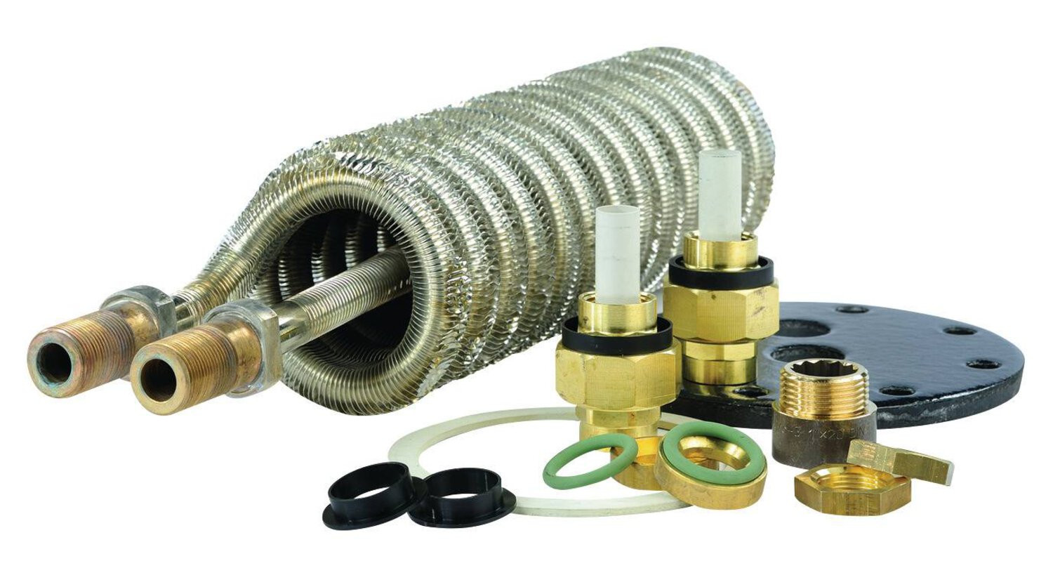 zur Einbindung eines zusätzlichen Wärmeerzeugers (z. B. Solaranlage), geeignet für Storatherm Aqua Heat Pump/Storatherm Aqua Solar/Storatherm Aqua/Storatherm Aqua Load und Storatherm Heat, mit Gegenflansch und Dichtung, zugelassen für Heizwasser und Solarflüssigkeit, aus Kupfer-Rippenrohr, elektrisch isolierte Anschlüsse zur galvanischen Trennung, zulässiger Betriebsüberdruck 10 bar, zulässige Betriebstemperatur 90 °C, Trinkwasserspeicher ca. 500/750 l