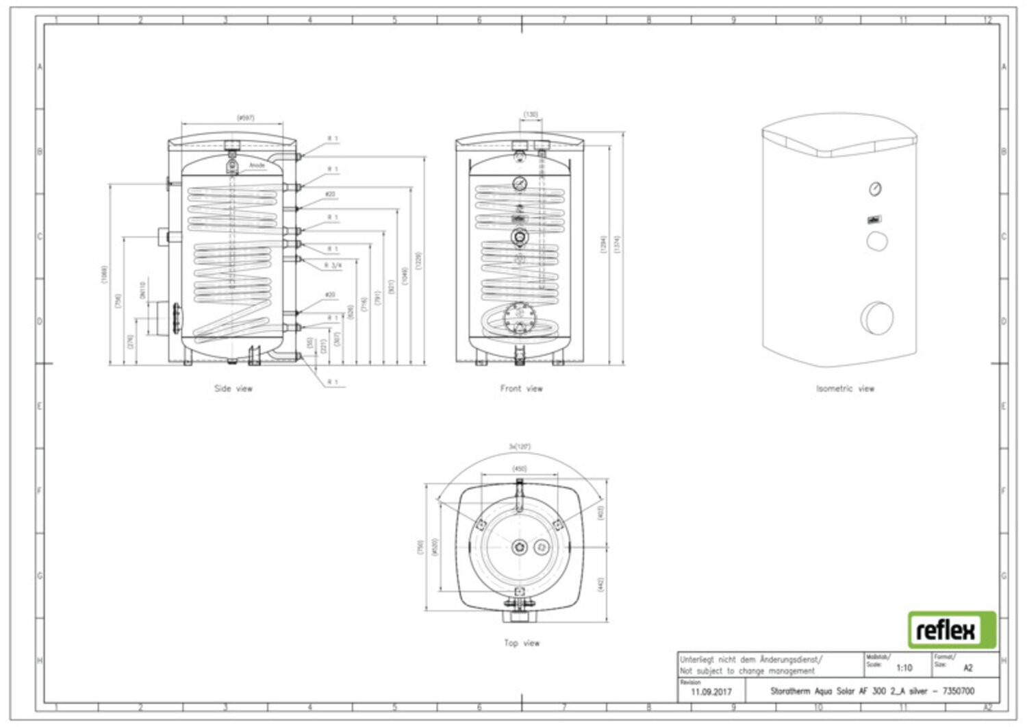 Reflex Speicher Storatherm Aqua Solar AF 500/2_A, Folienmantel, mit 2 Glattrohrwärmeübertragern, silber W817543