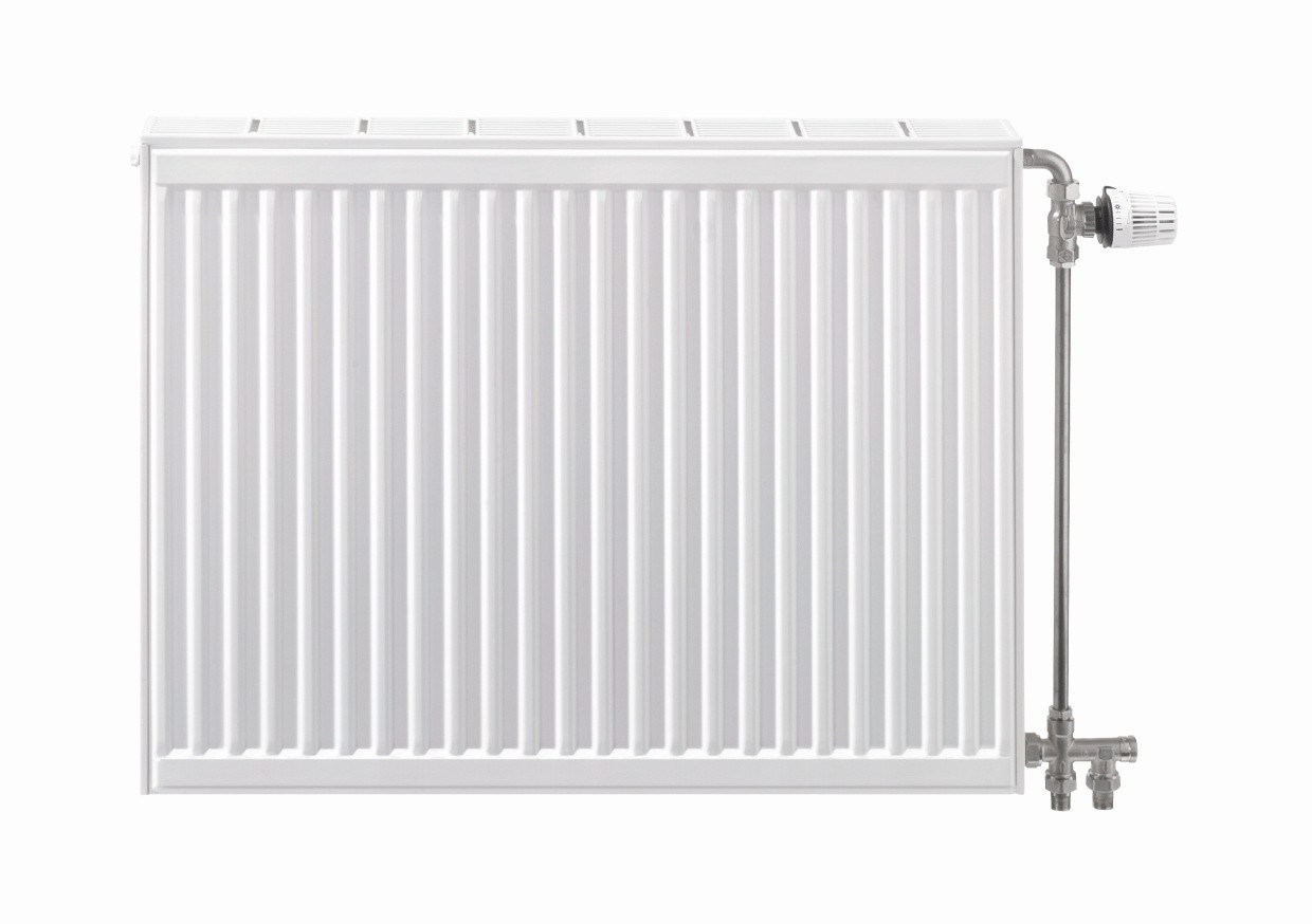 Renovierungsheizkörper, 3 lagig mit 3 x Konvektorblech, mit seitlichen und oberen Verkleidungen (abnehmbar), aus kaltgewaltztem Stahlblech nach EN442-1, mit rückseitig angeschweißten Aufhängelaschen, Wärmeleistung geprüft nach DIN EN 442 bei 75/65/20 Grad = 2669 Watt, bei 70/55/20 Grad = 2133 Watt und bei 55/45/20 Grad = 1348 Watt, Sickenteilung: 33mm, Prüfdruck: 13 bar, Betriebsdruck: 10 bar, Max. Betriebstemperatur: 110 Grad, Anschlüsse: 4 x 1/2" Innengewinde, Nabenabstand: 500 mm, Bauhöhe: 550 mm, Baulänge: 1200 mm, Bautiefe: 158 mm, Farbe: Stelrad RAL 9016, Fabrikat: Stelrad, Modell: Reno Compact, Typ 33, Artikel-Nr.: 02190550331200