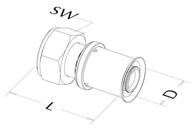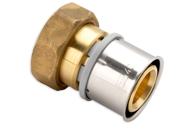 mit Stützkörper und Überwurfmutter/IG mit Flachdichtung, sowie Pressverbindung zum Anschluss des Systemrohrs DUOPEX S5