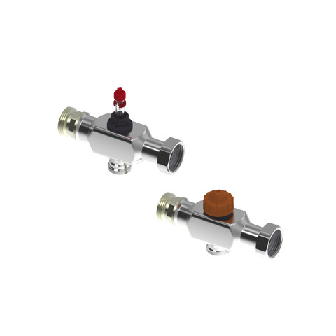 Breite 65 mm, bestehend aus Vorlauf- und Rücklauferweiterung, mit Übergangsnippel 1‘‘ zum Anschluss an einen Edelstahl Heizkreisverteiler Thermaset mit DFA
