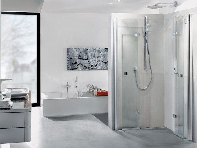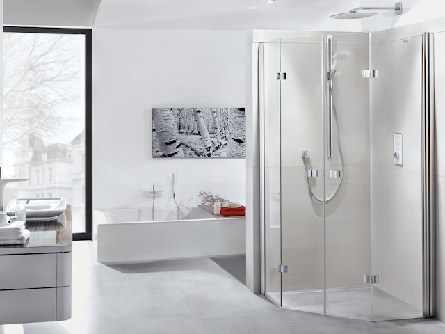 Roth Fünfeckdusche Laguna Maxi Wave LMWF4 2000 mm, ESG klar, Silber satin/echt chrom