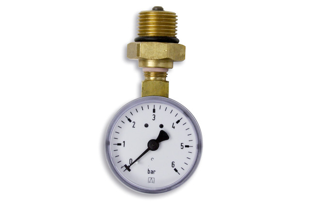 mit Montageventil ausgeführt und zur Montage am Kreuzstück (Grundpaket 1 1/2") geeignet, der max. Anzeigedruck des Manometers liegt bei 10 bar