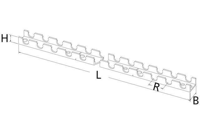 U-Schiene mit 25 mm Lochraster für die Rohrfixierung auf unebenen Flächen, abgestimmt auf die Systemrohre ClimaComfort S5 11 mm, mit Solltrennstellen