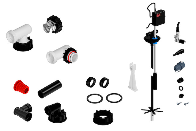 auch geeignet für Heizöl EL A Bio 5 bis Bio 15, Reihen- und Sonderaufstellung bis 5 Tanks, Füllsystem mit Düse 12 mm, schwarze Beutel, weiß bedruckt
