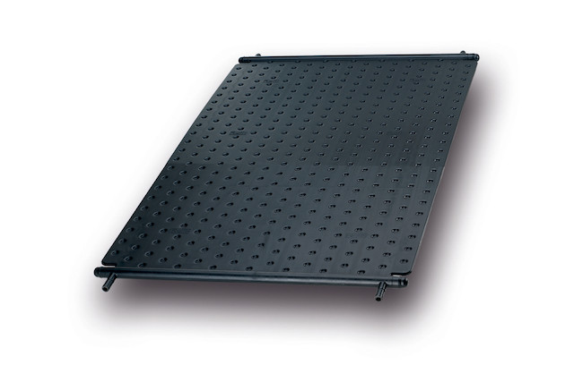Gewicht 8,5 kg, Wasserinhalt 8 l, bestehend aus PEHD in der Farbe schwarz, dient vorwiegend zur direkten solaren Erwärmung von Schwimmbadwasser im Durchlaufprinzip, jeder Absorber besitzt 8 Anschlüsse (4 Stück mit 25 mm und 4 Stück mit 40 mm), die je nach Anschlussart variabel belegt werden können, somit ist nur eine Ausführung notwendig, Montageart: Horizontal oder vertikal