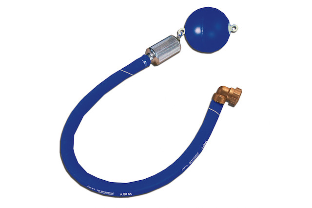 bestehend aus PE-Schwimmkugel, Ansaugfilter mit integriertem Messing-Rückschlagventil und Klemmfitting für PE-Wasserrohr 1", die schwimmende Entnahme ist einbaufertig montiert