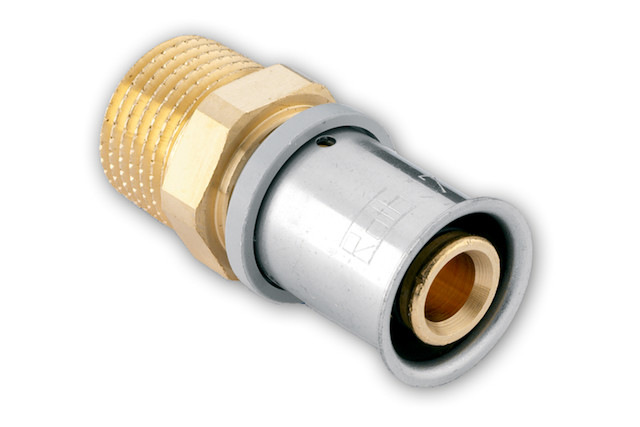 Übergangsstück einseitig Gewinde, Rohranschluss mit festem Stützkörper und einer fixierten Edelstahl-Hülse, für unlösbare Verbindungen mit den Systemrohren Alu-Laserplus