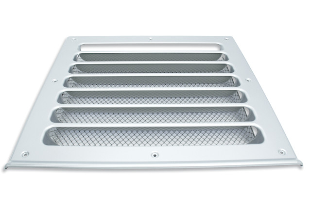 Wetterschutz- und Maschendrahtgitter für die Aufstellung, oberhalb der Erdgleiche, das Wetterschutzgitter wird bei jedem Gerät jeweils für Ansaug- und Ausblasseite benötigt, Eintauchtiefe 95 mm, für AuraCompact PFR 8 und 12 kW