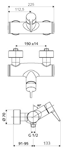 manuelle Auf/Zu-Betätigung, mit Einhebel-Aufputz-Dusch-Armatur, Einhebelmischer, Einhebel-Misch-Keramikkartusche mit Heißwasser- und Durchflussbegrenzung, 2x Rückflussverhinderer RV (EN 1717: EB), 2 S-Anschlüsse und Rosetten (tiefeneinstellbar), max. Betriebstemperatur 70 °C (80 °C für thermische Desinfektion), Gehäuse Messing konform TrinkwV, Oberfläche chrom, Anschluss 2x DN 15 G 1/2 AG, Abgang DN 15 G 1/2 AG (unten), Zertifikate: ACS, Belgaqua
