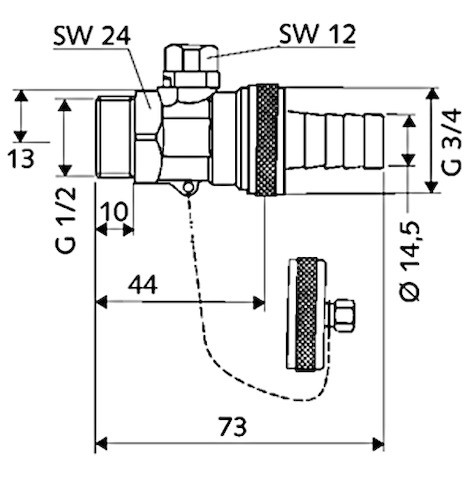 nicht für Trinkwasser geeignet, mit Kugelhahn (Kappe mit Kette) und Schlauchverschraubung, max. Betriebsdruck 16 bar, max. Betriebstemperatur 90 °C
