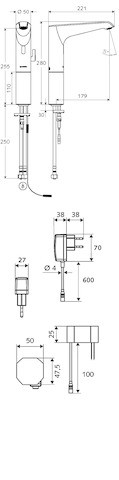 SCHELL Infrarot-Waschtisch-Armatur Xeris E HD-M large, Steckernetzteil 9 VDC, verchromt