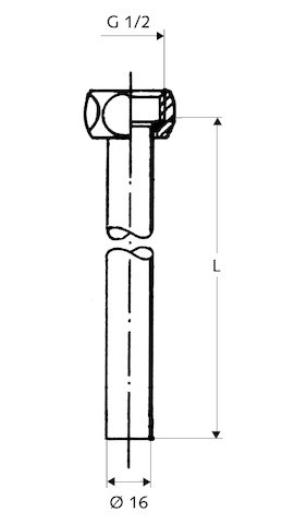 für Elektrospeicher, 2 Kupferrohre, einerseits mit Bördel und G 1/2 Überwurfmutter mit Dichtring, andererseits glatt