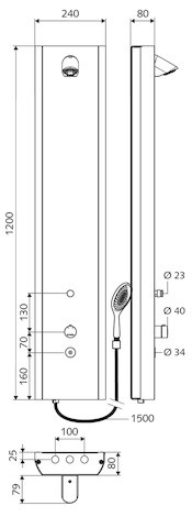 Mischwasser, Thermostat, optionaler Batterie- oder Netzbetrieb, geeignet zur Vernetzung mit Wassermanagement-System SWS, parametrierbar über Single Control SSC, Auslauf über Duschkopf und Handbrause, umschaltbar, schwenkbare Front, geeignet für Anschlüsse von hinten oder für Aufputzanschlüsse von oben, mit elektronischem Selbstschluss-Aufputz-Duschpaneel, Betätigungsknopf für Thermostat mit Überschubhülse, entriegelbare/arretierbare Temperatursperre 38 °C, CVD-Touch-Elektronik, programmierbar, spritz- und strahlwassergeschützt IP 65, Thermostat nach EN 1111, Verbrühungsschutz bei Ausfall der Kaltwasserversorgung, Magnetventil 6 V, 2x Rückflussverhinderer RV (EN 1717: EB), 2x Vorfilter, Handbrause, 3-fach verstellbar und Anschlussschlauch, Duschkopf COMFORT Flex, verstellbarer Neigungswinkel 12-32°, vandalengeschützt mit Softstrahl und Antikalknoppen, Anschlusszubehör mit Vorabsperrung(en), Befestigungsmaterial für Wandmontage, Einstellmöglichkeiten über SWS/SSC: Betätigungskraft (leicht/mittel/schwer, manuelle Programmierung (Aus/Ein), max. Laufzeit (1-950 s), Stagnationsspülung (Aus/1-1000 s, alle 1-250 h nach letzter Spülung/alle 1-250 h), Betätigungssperrzeit (Aus/1-255 s, Timeout 1-2000 min), Einstellmöglichkeiten über manuelle Programmierung: max. Laufzeit (10-360 s in 10 Programmstufen, Werkseinstellung 20 s), Stagnationsspülung (Aus/20 s, alle 24 h), Durchfluss max. 9 l/min druckunabhängig, Fließdruck 1-5 bar, max. Ruhedruck 8 bar, max. Betriebstemperatur 70 °C kurzzeitig, Betätigung aus Messing, Gehäuse Edelstahl 1.4404, Verrohrung Kunststoff konform TrinkwV, Wasserstrecke Messing konform TrinkwV, Oberfläche Betätigung chrom, Gehäuse Edelstahl gebürstet, 240 x 1200 x 80 mm, Brauseschlauch 1500 mm, Anschluss 2x DN 15 G 1/2 AG