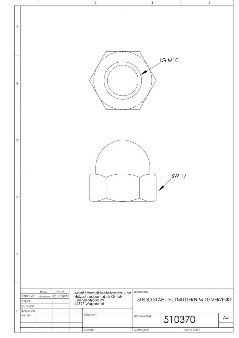 STEDO Hutmuttern M 10, Stahl verzinkt