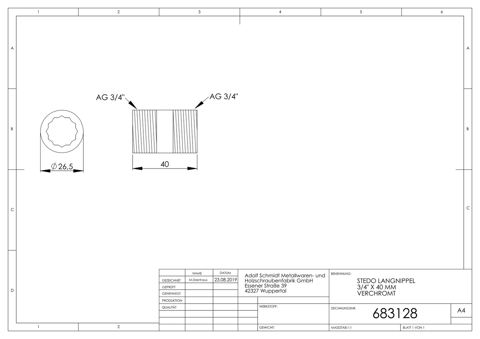 | Rohraußendurchmesser Anschluss 1 | 26,5 mm |